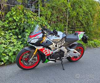 Vendo Aprilia Tuono v4 factory 2017 con 40350 km. Tagliando dei 40k già fatto ad inizio stagione, comprensivo di sostituzione trasmissione. Pastiglie freno anteriori nuove. Gomme michelin power 6 70%. Monta scarico Akrapovic omologato, specchietti bar end omologati, cupolino alto Powerbronze e tamponi paratelaio. Tutti i pezzi originali disponibili. Prossima revisione marzo 2027. Bollo pagato fino a febbraio 2027