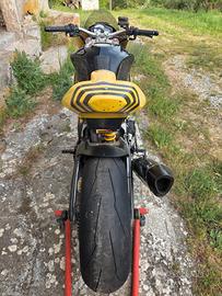 Vendo Aprilia Tuono V4 aprc del 2011 con 11600 km (è nata con le valvole di aspirazione in titanio). Motore: - cassa filtro RF con 4 iniettori in più e filtro BMC - condotti aria maggiorati in carbonio - alberi a camme RSV4 - finale Akrapovic - mappatura centralina fatta da Gabro Circa 2000 km fa sono stati fatti questi interventi da Cavazzin: - teste preparate - dischi frizione nuovi - candele nuove - sostituite bronzine di banco - sostituite catene di distribuzione - controllato cambio e innesti - controllate valvole e molle - fatta le finestrature sui carter - guarnizione coppa olio anti-sbattimento La moto viene venduta con: - blipper IRC - tamponi a doppio attacco Evotech - pedane arretrate regolabili Lightech - cover telaio e forcellone in carbonio - cover serbatoio - cover carter motore Gb racing - tamponi ruote - trasmissione 520 con catena did zvm-x sostituita da poco - batteria al litio Aliant YLP10 - pinze freno Brembo M4 con pasticche Z04 - pompa freno Brembo radiale - carene da pista con sella Cruciata - tutto il materiale originale per rimetterla da strada (è immatricolata) Non vendo gli accessori singolarmente e non mi interessano scambi. La moto è appena stata tagliandata con Silkolene pro xp 10w-50. Bollo pagato per tutto il 2026. Prezzo leggermente trattabile.