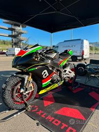La moto è un Aprilia Tuono V4 factory APRC 1100cc anno 2015 preparata uso pista: mappa Gabro, traction 8 livelli, antiwelling,cambio elettronico e freno motore regolabile,più 3 mappe potenza,scarico filtro aria, sospensioni Ohlins riviste da Noccioli, leveraggio forcellone RF SBK, condotti aria,ecc tanto carbonio, semimanubri,telaietto racing,pompa radiale 19x18 , gps integrato e tante altre cose