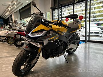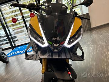 Aprilia Tuono V4 è l'inimitabile hypernaked: la macchina che trasforma prestazioni racing in adrenalina pura. Sfrontata su strada e imbattibile in pista. Design aggressivo, motore V4 da 180 CV E5 , appendici aerodinamiche per migliorare la stabilità e un pacchetto elettronico a-PRC con logiche predittive, in grado di anticipare il tuo stile di guida per un'esperienza senza compromessi.Il segreto è nel controllo