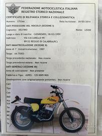 Vendo Aspes Hopi 125 RGS anno 1975, prima immatricolazione 1997, tutta originale, gomme nuove, cerchi originali Akront, comandi Magura nuovi, parafanghi Nonfango, manubrio Tommaselli, sella originale in condizioni perfette, documenti in ordine, iscritta al registro storico FMI, regalo scatola con ricambi anche introvabili come bobina d'accensione, fornisco serie guarnizioni motore e forchette cambio originali per eventuale revisione. Prezzo trattabile.