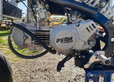 Motore yx 160cc 4 marce, Raffreddato ad olio con radiatore, Centralina maggiorata, Forcelle regolabili sia sopra che sotto, Impianto frenante AYRTON LEGEND con pompa freno maggiorata e pinze doppio pistoncino, Gas rapido, Sterzo piega bassa e paracolpi manubrio, Paramani, Ammortizzatore posteriore dnm tripla regolazione, Catena verde, Vaschetta recupero liquidi, Pedalina cambio corta in alluminio, Supporti e pedane arretrate, Scarico originale AYRTECK, Gomme pmt, Cerchi in lega originali AYRTON LEGEND, Set 4 tamponi, Grafiche personalizzate, Per maggiori info e foto contattami.