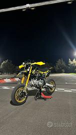 MOTORE ZS160 GPX ZONGHSHEN versione 3.0 Filtro Olio Interno, Frizione In bagno d'olio a 6 dischi rinforzati con accesso diretto RADIATORE lamellare ad alta efficienza dissipativa dotato di tubi in treccia aereonautica alta pressione per il passaggio olio. TELAIO EVOLUZIONE 2025 con nuovissima struttura, in acciaio al cromo molibdeno ad alta resistenza, di tipo perimetrale portante a traliccio a tubi tondi e con strutture della culla telaio e delle "gambe" telaio tagliate al laser. FORCELLONE posteriore IN ALLUMINIO 7020 SCATOLATO SUPERLIGHT rinforzato e irrigidito con trattamento di ossidazione dura, versione lunga EXTENDED EVO. FORCELLONE posteriore IN ALLUMINIO 7020 SCATOLATO SUPERLIGHT rinforzato e irrigidito con trattamento di ossidazione dura, versione lunga EXTENDED EVO. FORCELLE K4 PRO-SHOCK EVOLUTION (migliorate in scorrevolezza) idrauliche a Steli rovesciati con canne completamente registrabili sia in compressione che in estensione e pompante maggiorato. misura 730mm. DIAMETRO STELO 37mm. Completamente registrabili MONOAMMORTIZZATORE posteriore DNM HORNET RACE EVOLUTION 2024 (TOP DI GAMMA) a 4 REGOLAZIONI completamente regolabile sia alle alte velocita che alle basse velocita in estensione, compressione e precarico, molla a scelta tra (500/600/800 libbre) in base al peso e allo stile di guida del pilota. IMPIANTO FRENO ANTERIORE Z-BRAKE 2023 ( REPLICA CRF450) con pompa freno maggiorata e dopr" pinza freno doppio pistoncino con doppio disco a margherita da 220mm a 3 FORI. GAS rapido in alluminio. SELLA alta qualita', antistrappo/antiscivolo ad alta densità. modello EVO. TOP DI GAMMA CERCHI AYRTON - DM SUPER LEGGERI a 3 FORI 2024 IN LEGA d'alluminio rinforzato e temprato, tubless a 5 razze a Y anteriore 2.50x12, posteriore 3.00x12,