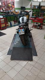 Moto con 4100 Km appena tandagliata ( nonostante dovevo aspettare i 6000 km). Moto nuova come si vede da foto con alcune modifiche effettuate tipo sella color testa di moro, serbatoio con strisce nere riverniciato con il colore bianco opaco, frecce e targha spostate tipo custom. Bollo pagato. La moto è pronta all'uso.
