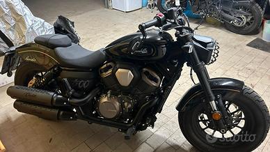 La moto si presenta con uno stile custom/bobber molto curato, in stile Indian / Harley, colore nero con dettagli opachi, ed è ideale sia per neopatentati A2 sia per chi si vuole avvicinare al segmento custom.
