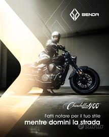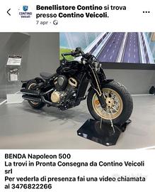 NUOVA Benda Motorcycles Napoleon 500 A EURO 6490,00 FRANCO CONCESSIONARIOMOTORE 500CC BICILINDRICO A "V" RAFFREDDATO A LIQUIDOTRASMISSIONE A CINGHIAALTEZZA SEDILE 70CMSERBATOIO DA 16LT2 ANNI DI GARANZIAPOSSIBILITA' DI FINANZIAMENTI A TASSI AGEVOLATISPEDIAMO I NOSTRI MEZZI GIA' PRONTI PER CORRERE