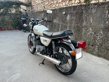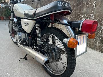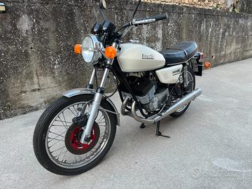 La moto monta scarichi originali, sound tipico e inconfondibile del bicilindrico 2 tempi Benelli. Ideale per collezionisti o appassionati di regolarità storica.