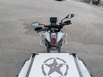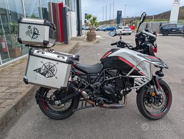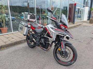 La Benelli TRK 702 X MY 2024 è una crossover adventure versatile da 698 cc, 70 CV (51,5 kW) e 70 Nm di coppia, omologata Euro 5+. Offre ruote a raggi (19" ant/17" post), ottima abitabilità, parabrezza protettivo, display TFT 5" e serbatoio da 20 litri. Progettata per lunghi viaggi. Ecco i dettagli principali della Benelli TRK 702 X 2024:Motore: Bicilindrico in linea, 4 tempi, raffreddamento a liquido, 4 valvole per cilindro, DOHC. Prestazioni: 70 CV (51,5 kW) a 8.000 giri/min e coppia massima di 70 Nm a 6.000 giri/min. Ciclistica: Forcella upside-down da 50 mm (escursione 173 mm) e forcellone in alluminio con mono centrale regolabile nel precarico e freno idraulico. Ruote: Cerchi a raggi in lega di alluminio con anteriore da 19" e posteriore da 17", equipaggiati con pneumatici 110/80 e 150/70. Dimensioni e Peso: Altezza sella 835 mm, peso a secco 218 kg (235 kg in ordine di marcia). Elettronica e Dotazioni: Display TFT a colori da 5", doppia porta USB (anche di tipo C), luci full LED, blocchetti retroilluminati. Consumi: Circa 4.6 litri / 100 km (circa 24 km/l). La versione 2024 si distingue per l'aggiornamento alla normativa Euro 5+ e un comportamento su strada definito fluido e lineare, ideale per il turismo. .