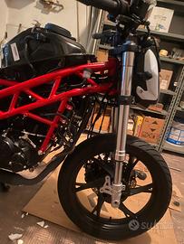 Vendo Benelli Bn 125 anno 2025 immatricolata, circa 550 km. Alla moto va sostituito o raddrizzato il telaio nella parte dell'avantreno ( le carene sono state rimosse solo a scopo illustrativo ma sono presenti anche quelle ). Prezzo trattabile, la moto è perfettamente funzionante (fari, frecce, forcelle, catena, gomme ecc)