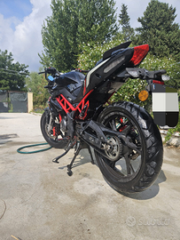 Moto Benelli Bn 125, anno 2019. Unico proprietario. Km 29000, tagliandata sempre due volte l'anno, ciclistica in ottime condizioni. Accessoriata con full scarico Blackwidow nuovo montato 4 mesi fa . Specchietti , leve e pedaline nuove . In possesso di pezzi originali. Copertoni da sostituire