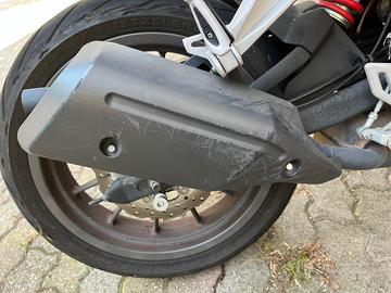 La moto presenta dei graffi sul carter dello scarico e leggeri graffi sui lati delle manopole del manubrio.