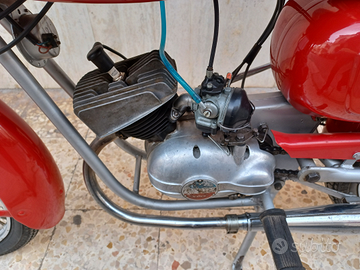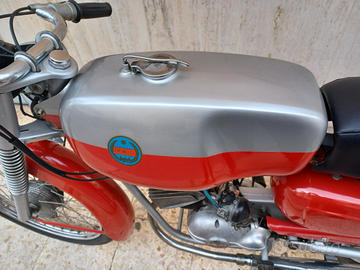 Moto riverniciata in ottime condizioni e circolante, motore revisionato funzionante, anche l'impianto elettrico funziona correttamente. Librettino a paginette dell'epoca originale.
