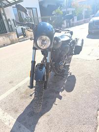 Vendo fantastica Benelli Imperiale 400 cc vero nero opaco, cupolino vintage, specchietto e cromature Total black, due borse laterali in pelle, regalo anche kit pulizia catena, faro led bianco, anno 2021, revisione appena eseguita, tagliando eseguito due mesi fa, nessuna manutenzione da effettuare, mai incidentata, caricatore smartphone su batteria e portatelefono incluso, km 14000 targa EX87180, vendo per cambio abitazione