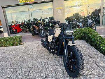 Leoncino Bobber 400 rappresenta la sintesi perfetta tra gli elementi iconici della gamma Leoncino e i tratti caratteristici che provengono dal settore custom/cruiser, qui reinterpretati dal Centro Stile Benelli. Ideale per l'uso urbano e per i viaggi fuori porta a breve e medio raggio, Leoncino Bobber garantisce un grande divertimento alla guida, unito al fascino di una moto dalle linee originali, che non passa mai inosservata, nemmeno da ferma. Ed è proprio la sintesi tra i diversi elementi stilistici la sua cifra distintiva: il parafango anteriore minimale, dove troneggia il Leoncino, la linea bassa enfatizzata dal doppio scarico laterale sovrapposto e la coda tronca sono alcuni tra i dettagli che denotano il suo spirito Bobber. I richiami al mondo Leoncino sono invece dati dal serbatoio dalla forma caratteristica, dalla firma luminosa ad arco presente nel faro anteriore e, ancora, dai fregi distintivi sui fianchetti.Anche il propulsore bicilindrico a V di 60°, omologato Euro5+, rappresenta una novità assoluta per Benelli e diviene elemento di design. Lo si nota dai dettagli, come l'alettatura di raffreddamento che impreziosisce il propulsore, raffreddato altrimenti a liquido, oppure dallo splendido elemento filtrante a vista, che cattura l'attenzione e diviene elemento fortemente identitario per il modello. Tra le novità in ambito tecnico figurano anche la trasmissione a cinghia e il controllo di trazione. Il manubrio con specchietti "bar-end", insieme alla strumentazione digitale "minimal", permettono al pilota di avere un perfetto controllo una volta in movimento, quando si potrà apprezzare anche l'originalità della posizione tipicamente cruiser, con le pedane avanzate che consentono una guida comoda e rilassata.Leoncino Bobber 400 è disponibile nelle colorazioni Desert Tan, Midnight Black e Onix Grey al prezzo di 5.490€ f.c.