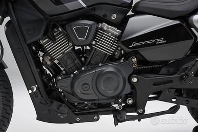 Leoncino Bobber 400 rappresenta la sintesi perfetta tra gli elementi iconici della gamma Leoncino e i tratti caratteristici che provengono dal settore custom/cruiser, qui reinterpretati dal Centro Stile Benelli. Ideale per l'uso urbano e per i viaggi fuori porta a breve e medio raggio, Leoncino Bobber garantisce un grande divertimento alla guida, unito al fascino di una moto dalle linee originali, che non passa mai inosservata, nemmeno da ferma. Ed è proprio la sintesi tra i diversi elementi stilistici la sua cifra distintiva: il parafango anteriore minimale, dove troneggia il Leoncino, la linea bassa enfatizzata dal doppio scarico laterale sovrapposto e la coda tronca sono alcuni tra i dettagli che denotano il suo spirito Bobber. I richiami al mondo Leoncino sono invece dati dal serbatoio dalla forma caratteristica, dalla firma luminosa ad arco presente nel faro anteriore e, ancora, dai fregi distintivi sui fianchetti. Anche il propulsore bicilindrico a V di 60°, omologato Euro5+, rappresenta una novità assoluta per Benelli e diviene elemento di design. Lo si nota dai dettagli, come l'alettatura di raffreddamento che impreziosisce il propulsore, raffreddato altrimenti a liquido, oppure dallo splendido elemento filtrante a vista, che cattura l'attenzione e diviene elemento fortemente identitario per il modello. Tra le novità in ambito tecnico figurano anche la trasmissione a cinghia e il controllo di trazione. Il manubrio con specchietti "bar-end", insieme alla strumentazione digitale "minimal", permettono al pilota di avere un perfetto controllo una volta in movimento, quando si potrà apprezzare anche l'originalità della posizione tipicamente cruiser, con le pedane avanzate che consentono una guida comoda e rilassata.