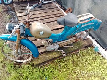 Benelli Deluxe 3vk SPEDIZIONE COMPRESA NEL PREZZO articolo non originale Ciclomotore d'epoca (i suoi cerchi sono da 19 e dovrebbero esserci)ad uso ricambi o per chi realmente ama restaurare casi impossibili o simili e ne sia in grado. Semicompleto di tutto .Dovrei disporre di altro perchè era completo smontato per restauro e mai ultimato.E una versione ultra rara 3 marce uno dei primi dovrebbe essere un DELUXE LUSSO 3VK del 1966 o comunque anni 60. Da restaurato e davvero particolare con coda posteriore pinna e fregi si e conservato .Presenta varie saldature sui componenti forcella e forcellone . E ripristinabile per chi ci sà fare .Vendo tutto a prezzo regalo 150 euro spedizione compresa INTERO arriva così come lo si vede in foto .Forse cè il marmittino originale le due coppette laterali e il borsello .Se ritrovati cederò assieme .Sella giuliari dell'epoca faro aquila e tappo benelli originale a vite ,devioluci ecc Molto bello restaurato.Motore gira e dà corrente e ho il suo cilindro e testata . Dispongo anche dei singoli ricambi ma conviene portarlo via intero . Resterà in vendita per pochi giorni in quanto poi scambiato con un pianoforte a muro.SPEDIZIONE COMPRESA NEL PREZZO 150 EURO SPEDITO .nemmeno il costo di un motore oramai.