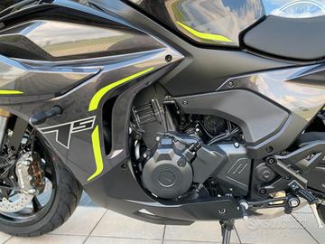 Lo Tornado 550 è equipaggiata con Motore Bicilindrico con raffreddamento a liquido con 56 CV - 41Kw, fanaleria completamente a LED, TFT da 7'' completo di tutte le informazioni per il pilota, forcella anteriore Marzocchi regolabile con pinze freno radiali Brembo.
