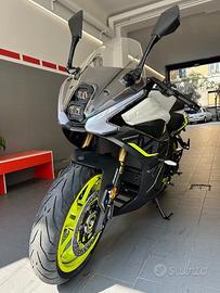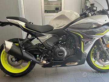 Nella famiglia Benelli ritorna la vera passione! Carenata per sfidare la strada. Linea aggressiva e di rara bellezza. Ma con un grado di comfort alto, garantito da un semi manubrio full faring che ti permette una posizione naturale senza caricare i polsi. Il motore è un bicilindrico con doppio albero a 8 valvole da 56 Cv, reattivo fin dai bassi regimi. Spinta decisa ma facile da gestire, anche grazie alla doppia mappatura del motore (Turistica o Sport), al controllo di trazione e al peso che si posiziona sotto la soglia dei 195 Kg. L'avantreno è granitico grazie agli steli rovesciati Marzocchi idraulici, regolabili in precarico, e ai doppi dischi con pinze Brembo radiali a doppio pistoncino. Il serbatoio da 16,5 Litri permette a questa moto un'autonomia da gran turismo. Chiudono il pacchetto le luci full led e il quadro strumenti TFT a colori.