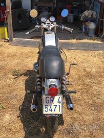Vendo Moto Benelli Tornado 650 S del 1972, bicilindrica d'epoca, unico proprietario, immatricolata nel 1972 con aggiornamento al libretto avvenuto nel 1999. Moto personalizzata con cura mantenendo i pezzi originali (eccetto sella e manicotti, sostituiti con componenti nuovi). Piccola modifica con arretramento di freni e cambio, e serbatoio originale personalizzato con firma pittografica del proprietario.