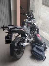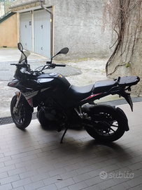 Moto stradale di cilindrata 250, catena nuova montata da pochi giorni, comprende 1 bauletto da circa 50 l (ci stanno due caschi), 2 borse laterali agganciabili ai fianchi della coda ed 1 borsa più piccola attaccabile al serbatoio; moto molto comoda per i viaggi lunghi o di breve durata sia in 1 che in 2 a bordo. Prezzo trattabile.