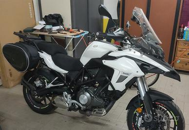 Benelli TRK 502 Stradale - 2017 - 26.000 km Vendo Benelli TRK 502 stradale, immatricolata nel 2017, con 26.000 km all'attivo. Moto usata ma in ottime condizioni, sempre tenuta con cura e tagliandata regolarmente. MANUTENZIONE E AGGIORNAMENTI RECENTI: 1)Tagliando completo effettuato a 24.000 km (giugno 2025) 2)Candele nuove a 24.350 km 3)Kit trasmissione e pignone maggiorato montato a 21.500 km 4)Revisione effettuata a giugno 2024, quindi in regola fino al 2026 5)Pignone maggiorato per miglior comfort di marcia e riduzione consumi 6)Luci a LED bianco freddo GOMME: Metzeler M7 montate a 16.300 km -> attualmente circa 9.700 km percorsi, ancora in buone condizioni con vita residua stimata al 40-50%. ACCESSORI INCLUSI NEL PREZZO: 1)Navigatore Android Auto con doppio Bluetooth (cellulare + interfono) - valore ?100 2)Piastra + bauletto Kappa KGR52 da 52L in ottimo stato - valore oltre ?200 3)Borse laterali morbide JFG Racing (capacità totale fino a 58L) - valore oltre ?60 PREZZO RICHIESTO: ?2950 leggermente trattabili (passaggio escluso) ZONA: Acerra (NA) o Molfetta (BA) Moto perfetta per viaggi, commuting e turismo leggero. Affidabile, comoda e accessoriata. Disponibile per visione e prova senza impegno. Per qualsiasi dubbio non esitate a contattarmi