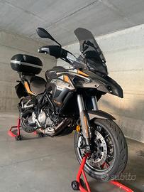 Benelli TRK 502 stradale del 2018 com 35000km. Sospensioni anteriiri è mono posteriore revisionato, pneumatici 80%, manubtio da 80cm piega bassa in Ergal originale benelli piu riser, manubrio otiginale, piu cupolino originale fume, uno trasparente e uno basso da 34cm nero opaco Isotta, sostituiti olio, filtro olio, filtro aria, candele e olio freni, bauletto Givi 46L faretti aggiuntihi a led, paramotore. Una sevonda sella originale piu alta.La moto è in ottime condizioni. Astenersi perditempo, prezzo NON trattabile