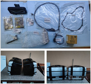 Regalo una serie di ricambi originali nuovi, tra cui: due coppie di pastiglie freno; un motorino di avviamento; cavo di frizione; sensore iat; guarnizione di frizione, ecc.