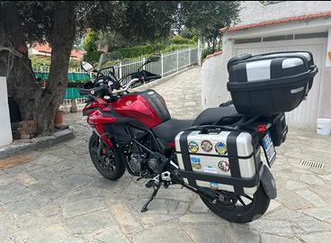 Vendo Benelli TRK 502 stradale completa di bauletto, borse laterali della Givi ,faretti supplementari, scarico Leo Vinci + marmitta originale. Perfette condizioni. Causa inutilizzo. Prezzo trattabile.