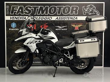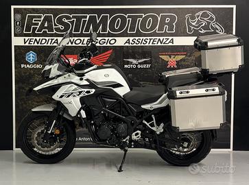 TRK 502X è la bicilindrica Benelli versatile e moderna, pensata per essere la compagna di viaggio ideale per tutte le tue avventure. Il motore è l'affermato bicilindrico quattro tempi raffreddato a liquido da 500cc, sviluppato da Benelli per le sue ultime creazioni con l'aggiornamento alla normativa Euro 5, alimentato ad iniezione elettronica, con distribuzione a doppio albero a camme in testa e 4 valvole. La potenza massima è di 47,6 CV (35 kW) a 8500 giri/min, la coppia di 46 Nm (4,6 kgm) a 6000 giri. Il telaio è un traliccio in tubi con piastra in acciaio ad alta resistenza. Le sospensioni offrono il massimo della comodità a pilota e passeggero, grazie ad una forcella upside-down con steli da 50mm, con un'escursione di 140mm davanti ed un forcellone oscillante con monoammortizzatore centrale regolabile nel precarico molla e freno idraulico in estensione, con una escursione di 45 mm. Ottime le prestazioni dell'impianto frenante modulabile, grazie soprattutto al doppio disco anteriore semiflottante di 320 mm di diametro e pinza a quattro pistoncini e al disco posteriore di 260 mm di diametro, con pinza a singolo pistoncino. Moto coperta da dodici mesi di garanzia.