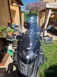 Gli ho montato parabrezza più grande della GIVI, ho anche quello originale. Ho montato anche il bauletto della GIVI con poggiaschiena da 50L (ci vanno 2 caschi).