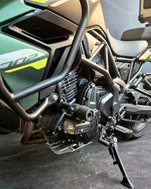 TRK 702 è una globetrotter comoda ed instancabile, la proposta Benelli pensata per viaggiare, ma anche per godersi la città in tutta comodità. Una moto facile, intuitiva, ideale anche per le lunghe percorrenze, per viaggi all'insegna delle emozioni, grazie alla sua solida affidabilità, alla personalità dinamica e allo stile inconfondibile.Accessori: Barre para carena Benelli, Tamponi Barracuda, Faretti supplementari led, Tris valigie originali Benelli.