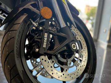 TRIS DI BORSE ORIGINALI BENELLI IN ALLUMINIO INCLUSE NEL PREZZO. TRK 702 è una globetrotter comoda ed instancabile, la nuova proposta Benelli pensata per viaggiare, ma anche per godersi la città in tutta comodità, regalando emozioni uniche.Questa due ruote offre inoltre un gruppo ottico full led e un display TFT a colori da 5'' ad alta risoluzione, che dispone di una connessione bluetooth per collegarsi al telefono mostrando le chiamate in ingresso e notifiche e tramite i blocchetti manubrio, sarà inoltre possibile aprire e chiudere la chiamata.Il pilota è al centro del concetto della TRK 702. Il parabrezza maggiorato offre una protezione aerodinamica superiore sia per chi guida che per il passeggero, rendendo i lunghi tragitti ancora più piacevoli. Le barre paramotore sono ora di serie, offrendo sicurezza su ogni tipo di percorso. E per chi non si ferma mai, nemmeno con il freddo, manopole e sella riscaldate sono ora incluse nella dotazione standard. Nuova versione disponibile in pronta consegna, vieni a scoprire la promozione riservata direttamente in concessionaria. Le agevolazioni sul prezzo hanno validità fino a fine mese, vincolate dalla giacenza in magazzino. I nostri partner finanziari sono Agos Ducato, Findomestic, Santander, C.A. Bank e Compass con la quale puoi finanziare (se sei censito) anche senza busta paga. Puoi finanziare anche l'intero importo senza acconto e avrai la possibilità di pagare con minirate oppure sfruttare un fantastico tasso zero in 24 rate. La garanzia ufficiale Benelli è di 3 anni e hai incluso nel prezzo anche due anni di assistenza stradale. Avrai anche la possibilità di assicurare il tuo mezzo tramite la nostra compagnia convenzionata, ad oggi risulta la più conveniente ed economica con la possibilità di montare gratuitamente il localizzatore satellitare che ti permette di risparmiare il 40 % del costo. Siamo concessionari ufficiali Benelli, in sede troverai, oltre a una vasta esposizione, l'officina autor