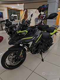 Benelli TRK 702 X Spinta da un motore bicilindrico parallelo Euro5+ da 698 cc, è in grado di erogare una potenza massima di 70 CV a 8.000 giri/min e una coppia di 70 Nm a 6.000 giri/min, garantendo una risposta pronta e brillante in ogni situazione. Modello di punta della gamma Benelli, la TRK 702 X è equipaggiata con una forcella anteriore rovesciata da 50 mm abbinata a un monoammortizzatore posteriore regolabile. Per assicurare le migliori performance su ogni terreno, monta una ruota anteriore da 19" e una posteriore da 17", mentre il serbatoio da 20 litri è pensato per affrontare anche i viaggi più lunghi senza preoccupazioni. Per migliorare il comfort e la sicurezza durante le lunghe percorrenze. TRK 702 X Euro5+ è dotata di serie di barre paramotore parabrezza maggiorato manopole riscaldabili e sella riscaldata. Il comfort non è riservato solo al pilota: anche il passeggero beneficia di importanti miglioramenti grazie alla nuova sella posteriore dalla forma più ergonomica e al portapacchi ridisegnato per una migliore sistemazione del top case. Dal punto di vista tecnologico, la TRK 702 X offre un impianto di illuminazione full LED e un display TFT da 5 pollici con connettività Bluetooth e WiFi. La nuova Benelli TRK 702 X Euro5+ è disponibile, al prezzo di 7.490€