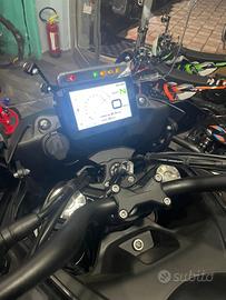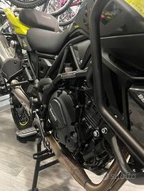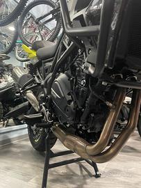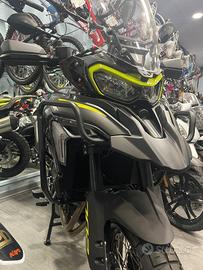 Benelli TRK 702 X EU5+ è una adventure versatile, agile e maneggevole, pensata per affrontare ogni tipologia di percorso, sia su asfalto che in off-road. Una moto capace di garantire prestazioni ottimali senza mai mettere il pilota in difficoltà, sviluppata dal reparto R&D e dal Centro Stile Benelli a Pesaro. Spinta da un motore bicilindrico parallelo Euro5+ da 698 cc, è in grado di erogare una potenza massima di 70 CV a 8.000 giri/min e una coppia di 70 Nm a 6.000 giri/min, garantendo una risposta pronta e brillante in ogni situazione. Modello di punta della gamma Benelli, la TRK 702 X è equipaggiata con una forcella anteriore rovesciata da 50 mm abbinata a un monoammortizzatore posteriore regolabile. Per assicurare le migliori performance su ogni terreno, monta una ruota anteriore da 19" e una posteriore da 17", mentre il serbatoio da 20 litri è pensato per affrontare anche i viaggi più lunghi senza preoccupazioni. Per migliorare il comfort e la sicurezza durante le lunghe percorrenze, la TRK 702 X Euro5+ è dotata di serie di barre paramotore, parabrezza maggiorato, manopole riscaldabili e sella riscaldata. Il comfort non è riservato solo al pilota: anche il passeggero beneficia di importanti miglioramenti grazie alla nuova sella posteriore dalla forma più ergonomica e al portapacchi ridisegnato per una migliore sistemazione del top case. Dal punto di vista tecnologico, la TRK 702 X offre un impianto di illuminazione full LED e un display TFT da 5 pollici con connettività Bluetooth e WiFi. La nuova Benelli TRK 702 X Euro5+ è disponibile, al prezzo di €7.025 € f.c., nelle colorazioni Anthracite Grey. Disponibile da subito! Prezzo fino ad Esaurimento Scorte! Ultimo Rimasto! Promo con Valige incluse! Costi di immatricolazione a parte!