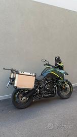 Vendo moto in ottime condizioni, usata prevalentemente su asfalto, molti accessori montati (carpuride, staffa givi, sensori pressione gomme, tris di valigie in alluminio, paracoppa originale Benelli nero ecc) paramani non compresi. Tagliando eseguito ad Aprile (cambio olio motore + olio freni). Gomma anteriore 50%, posteriore 100%.