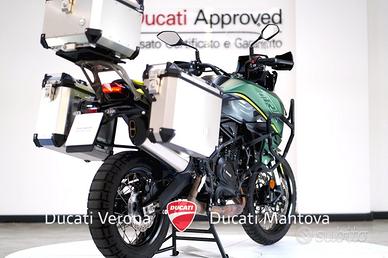 Ducati Verona - Bosetti Moto, il tuo punto di riferimento per le moto usate e certificate. Offriamo solo moto controllate e garantite, per acquisti in totale serenità. Qui ti proponiamo una straordinaria opportunità: Benelli TRK 702 X (2024) - Super Accessoriata, Catena/Corona/Pignone Nuovi! La maxi-enduro per eccellenza, pronta per macinare chilometri e avventure! Proponiamo questa Benelli TRK 702 X, immatricolata a maggio 2024. Con 23.332 km la moto è stata usata intensamente ma è mantenuta in ottime condizioni ed è già completa di accessori fondamentali. Ideale per chi cerca una moto affidabile, accessoriata e con la manutenzione straordinaria appena eseguita, ad un prezzo imbattibile. Caratteristiche Principali: Modello: Benelli TRK 702 X Data Immatricolazione: Maggio 2024 Chilometraggio: 23.332 km Motore: Bicilindrico, 698 cc. Punti di Forza e Dotazione Esclusiva: Full Adventure: Completa di Tris di borse in alluminio originali Benelli, perfette per i lunghi viaggi. Protezione Extra: Dotata di paramotore originali per una maggiore sicurezza. Manutenzione Eseguita: Catena, corona e pignone sono stati appena sostituiti, garantendo una trasmissione nuova. Condizioni Ottime: Nonostante il chilometraggio, la moto è stata curata e si presenta in ottime condizioni generali. Garanzia Dealer: Coperta da garanzia di conformità. Possibilità di finanziamento. Condizioni di Vendita: Prezzo già scontato (valido solo senza ritiro usato): 5.490 € Prezzo di listino (valido per inizio trattativa o con ritiro usato): 5.990 € Offriamo finanziamenti e permute con moto o OROLOGI di nostro gradimento, e acquistiamo moto con pagamento immediato. Contatti: Ducati Verona - Bosetti Moto Info e prenotazioni: N.B.: La dotazione tecnica e gli accessori possono variare. Verificare l'equipaggiamento specifico del veicolo in sede. Ducati Verona declina ogni responsabilità per involontarie incongruenze. I veicoli ritirati ai sensi