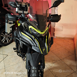 Vendo splendida TRK 702X con solo 2800km, immatricolata Giugno 2024, con Garanzia ufficiale Benelli. La moto è stata tagliandata a 1000 km presso officina autorizzata Benelli. Accessori aggiuntivi sono, cupolino maggiorato Fumè, adesivi protezione serbatoio e barre paramotore e para carene,porta telefono e cornice parasole per il display, Tris di Valigie. Il prezzo non è trattabile.