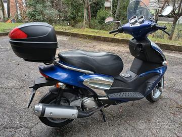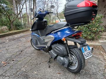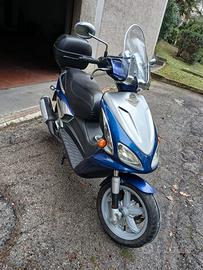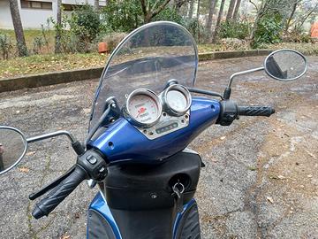 Molti anni pochi km .Lo scooter è revisionato e bollato modello ECO con alimentazione benzina verde .Il motore aspirato yamaha da una bella spinta allo scooter.Cambiata pompa acqua a luglio dello scorso anno con olio .Il resto batteria ecc. compresa catena di distribuzione fatta da 2 anni a posto .Dato il mio scarso utilizzo lo do a prezzo irrisorio , quindi puo essere usato anche solamente per ricambi o altro .