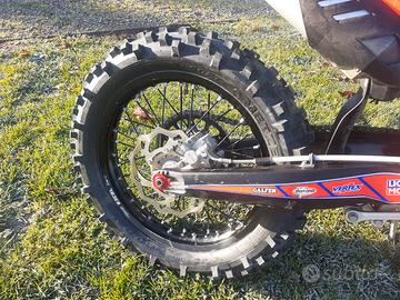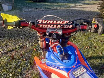 100 ore, mousse ant e post. forcelle e mono preparati xrace. Coprisella ed imbottitura originali nuovi. protezioni carbonio marmitta-carter frizione ed accensione. corona originale bimetallica. paramani originali nuovi. manubrio renthal, Kit beta intonso. manutenuta regolarmente. mai gare. leggermente trattabile. Valuto permuta con trial 4T