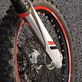 Divertimento puro. Nata per off Road, ma va benissimo anche nell'"enduro urbano" del nostro traffico. Guida appagante ogni volta che la prendi. Splendido motore 2T a carburatore pronto ai bassi e infinito nell'allungo. Sempre ben tenuta è stato appena effettuato secondo cambio pistone alle 240 ore e appena installata batteria nuova. Avviamento elettrico comodissimo. In più non c'è bisogno di farsi la miscela perché ha miscelatore automatico ben funzionante che dosa con estrema precisione. Disponibili e incluse plastiche nere con adesivi Grenzganger e paramani racing. Tel . 328 8225964