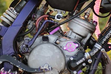 vendo beta tpr 86 per passaggio a cilindrata superiore, motore chiuso da me in garage non l'ho mai portata da preparatori o meccanici ,la moto attualmente avrà più o meno 10h il motore monta: maxi kit tpr 86 carter raccordati al cilindro vl18 collettore motorforce 30pwk filtro top giallo pvl 22,5 frizione malossi dissipatore di calore most sesta lunga trasmissione nuova rapporti 15/50 pompa completa stage6 (alza pompa e girante ricavato dal pieno) 2 radiatori ktm 85 krm 80/90 alza pacco krm viola estetica monta: tappo olio miscela krm viola tappo cilindro krm viola pedivella viola specchietti bassi manubrio 28mm+riser plastiche beta 2008 parafango e piatta ktm 65 portatarga chiudibile pedana cambio ribassata nera pompa posteriore e pinze nuove cedo anche delle pastiglie nuove brembo leva frizione corta copri sella nero paracolpi krm manopole krm comando gas viola pedane viola stacca massa stege6 viola rubinetto benzina nuovo vari tubi viola tubi radiatore ponziracing gomme dunlop sportmaxqlite nuove appena cambiate telaio cerchi forcelle e tutto il resto verniciato a pistola ci sono alcune cose da fare cambiare: disco posteriore perché troppo piccolo e non tocca bene sulle pastiglie e il codino perché mi si è rotto cadendo dal cavalletto. mando foto della chiusura del blocco se interessati,sono disponibile a farla vedere prima dell'acquisto, cedo anche vari pezzi originali. PREZZO TRATTABILE