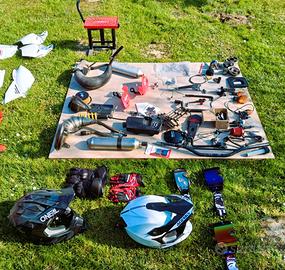 VENDESI BETA 50RR 2017 Motociclo in OTTIME condizioni, con moltissime parti sostituite: originali e varie modifiche (compresi tutti i pezzi che si vedono in foto per riportarla originale) Lavori fatti a Maggio 2025 (da allora fatti circa 1.500/1.700 km) , nello specifico : MOTORE : Albero + biella TPR – Cuscinetti – Paraoli – Frizione TOP – Collettore e pacco lamellare TOP – Cilindro/Testa/Pistone TOP (70) – Cavo bobina – Copri-frizione – Copri-volano – Pedalina/Coperchio pompa olio/Viti Rosso ergal/alluminio (carter non lavorati lasciati originali) – Carburatore Dellorto (originale) PHBN 21 – Aggiunto DOPPIO RADIATORE (Malossi) – Filtro aria conico – Marmitta con pancia e silenziatore VOCA passaggio basso 50/70 (+ LeoVince pancia + silenziatore) – Molla accensione CICLISTICA / Varie : Pastiglie freno ant/post – Ammortizzatore posteriore regolabile – Pignone + Corona Stage6 + Catena – Pneumatici Pirelli Scorpion (post 125) semi-tasellati – Verniciatura cerchi + Forcelle – Cuscinetti ruota – Gas rapido Carene ORIGINALI + Grafiche ORIGINALI : NUOVE + kit Carene originali senza adesivi + kit Carene nero + Piatta YZ bianca + Faretto Compreso di tutti i pezzi-cavalletti-caschi-guanti-visiere che vedete in foto + 2 lt olio 2T Motorex racing + 1 litro olio Motul 75w90 carter/frizione (sempre cambiato olio ogni 500/700km) + n° 2 cavalletti alzamoto (1 centrale +1 posteriore – vedi foto) Moto targata e revisionata regolarmente da passaggio (Scadenza revisione/assicurazione Giugno ’26) Vendesi per inutilizzo – prezzo NON trattabile.