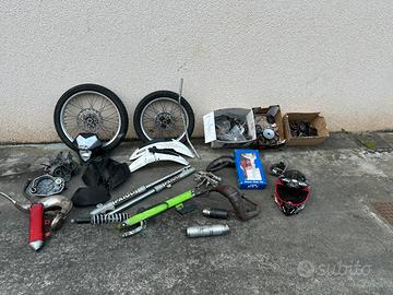 Con nelle scatole pezzi vari come conta kilometri 2/3 frizioni e ricambi vari con anche 2 o 3 cilindri più scatole con dentro frizione e altre oggetti originali