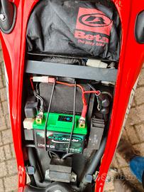 vendesi beta alp 4.0 del 2012, omologato per due persone, soli 6400 km, perfetta sempre tagliandata e con vari lavori eseguiti. gomme e camere nuove Continental con 300 km, batteria al litio con potenza doppia rispetto all'originale, filtro aria in spugna twinair cambiato l'anno scorso, olio forcelle e paraoli cambiati 2 anni fa, carburatore revisionato, sacchetta attrezzi originale sotto sella, porta targa corto con luci led. veramente tenuta bene, plastiche perfette e nessuna riga o botte su telaio ecc..pronta da usare. per altre foto chiedete pure..vendo per inutilizzo ma non ho nessuna fretta quindi solo persone interessate no offerte ridicole. grazie