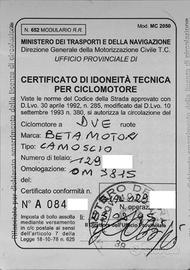 BETA CROSS 50, uno dei primi prodotti, si stima intorno il 1967/8, si presenta conservato con svariati segni del tempo, non sembra aver mai ricevuto restauri. Ha il libretto (quindi con una 70ina di euro si ottiene la targa) e la doppia corona strada/fuoristrada tipica dell'epoca.