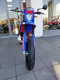 La RR 50 Motard esprime tutta la sua racing attitude su strada, dove ogni curva diventa pura adrenalina. Accessoriata con i leggerissimi cerchi neri da 17", in lega o a raggi a seconda della versione, vanta il look da vera motard per la giungla urbana.