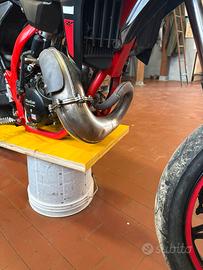 la moto è stata aquistata nel 2022, nuova di concessionario mai, incidentata con altri veicoli solo qualche graffio poi riparato. il blocco del motore non è mai stato lavorato, è tutto originale, sono solamente stati tolti i fermi ovvero marmitta la pancia e una piccola lavorazione al carburatore