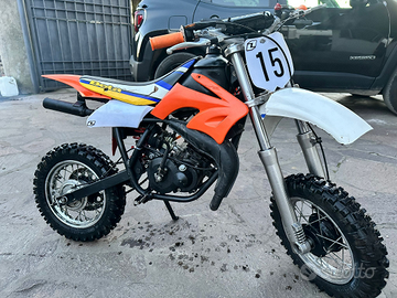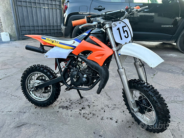 Perfetta per i primi approcci al mondo del cross o semplicemente per giro in giardino, moto a benzina 2t , moto funzionante con carene non originali riadattate,