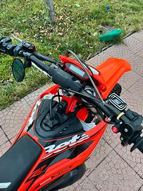 Vendo beta RR 125 2024 per passaggio a cilindrata superiore. La moto monta: pancia DBR, silenziatore bud racing, testa VHM con cupola compressione standard, pignone da 14 denti e corona beta racing da 49 denti, copri serbatoio in carbonio CMT compositi, tappi serbatoi freno/frizione SM project neri, convertitore AC/DC ghost motard quindi si possono montare fari a led senza avere una batteria. Cedo anche due filtri dell'aria oltre a quello montato, il tappo che va al posto del