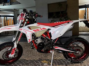 Vendo Beta rr 125 2 tempi racing causa inutilizzo. La moto è sempre stata tenuta al chiuso in garage ed è sempre stata effetuata la manutenzione ordinaria. Inoltre è stata appena eseguita la revisione ufficiale (13/03/2026) durante la quale sono anche state sostituite la pastiglie. La moto in aggiunta monta: • Kit motard composto di: -Cerchi excel con successiva anodizzazione rossa -Disco anteriore maggiorato Moto-Master •Portatarga regolabile •Coprisella in pelle con reimbottitura aggiuntiva •Copriserbatoio in carbonio •Copritelai in carbonio •Filtro dell’aria racing •Grafiche personalizzate •Kit di Plastiche bianche originale Beta •Frizione nuova originale più adatta all’uso stradale •Pneumatici Diablo Rosso 3 ancora in ottime condiziondizioni